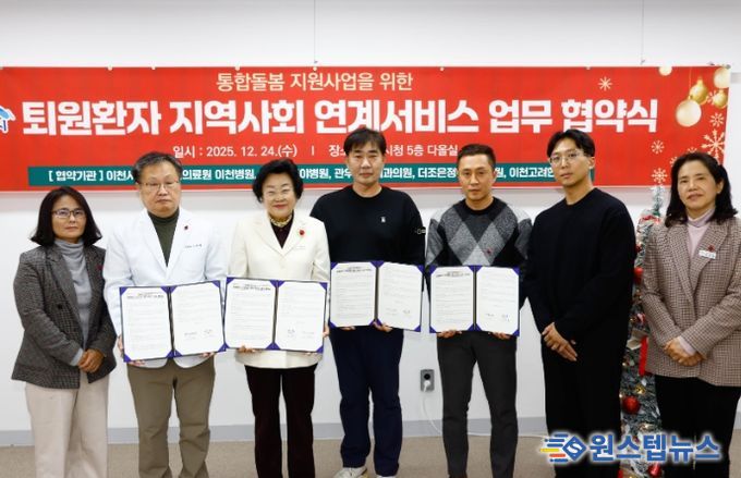 원스텝뉴스 이병희 기자 | 이천시는 12월 24일 시청 다올실에서 퇴원환자의 안정적인 지역사회 복귀와 지속적인 돌봄지원을 위한 ‘퇴원환자 지역사회 연계 서비스 업무협약’을 체결했다.