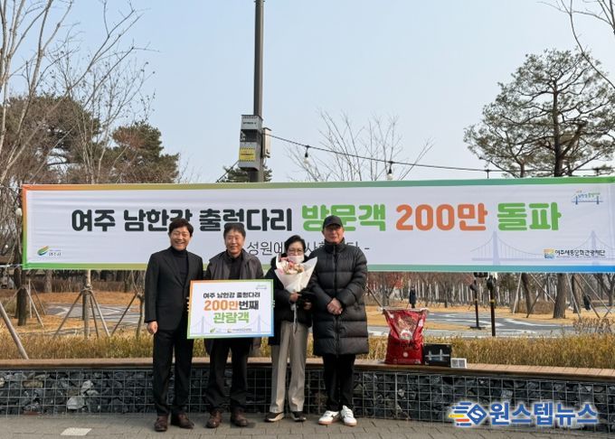 이번 200만 번째 방문객에게는 여주쌀 20kg, 출렁다리 레고 등 출렁다리 굿즈가 기념 선물로 전달됐다. 행운의 주인공은 충북 음성에 거주하는 60대 박용관 씨로, 29일 일본 요코하마에서 거주 중인 누나 박정숙 씨와 매형 마쯔시다 데쯔오 씨와 함께 출렁다리를 찾았다. 박 씨는 “연말을 맞아 여주를 방문했는데 200만 번째 방문객이 되어 놀랍고 기쁘다”라며, “남한강 풍경이 인상적이었고, 다시 한번 찾고 싶은 관광지”라고 소감을 전했다.