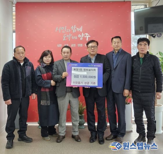 원스텝뉴스 이병희 기자 | 양주시 옥정1동 방위협의회가 29일 옥정1동 행정복지센터를 방문해 어려운 이웃을 돕는 데 써달라며 성금 150만 원을 기탁했다.