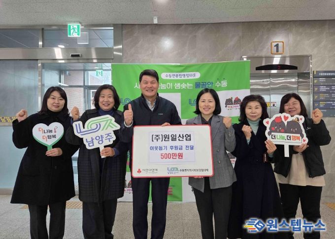 원스텝뉴스 이병희 기자 | 남양주시는 29일 수동면 소재 ㈜원일산업에서 지역 내 어려운 이웃을 위한 후원금 500만 원을 경기사회복지공동모금회를 통해 수동면 지역사회보장협의체에 지정 기탁했다고 밝혔다.