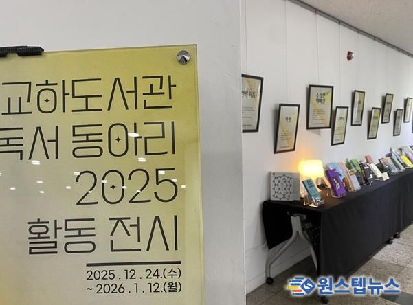 교하도서관은 2025년 한 해 동안 다양한 분야에서 활동해 온 소속 독서 동아리들의 성과를 공유하기 위해 특별 전시를 마련하고, 이를 내년 1월 12일까지 도서관 지하 특설 공간에서 운영한다고 밝혔다.