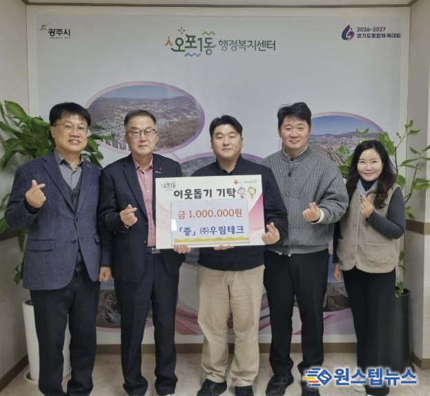 원스텝뉴스 이병희 기자 | ㈜우림테크 임택현 대표는 30일 지역 내 어려운 이웃을 위해 사용해 달라며 성금 100만 원을 광주시 오포1동 행정복지센터에 전달했다.