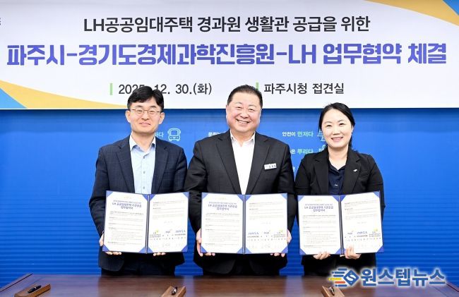 원스텝뉴스 이병희 기자 | 파주시는 30일 경기도경제과학진흥원, 한국토지주택공사 경기북부지역본부와 경과원 파주시 이전에 따른 엘에이치(LH) 공공임대주택 생활관 지원을 위한 업무협약을 체결했다고 밝혔다.