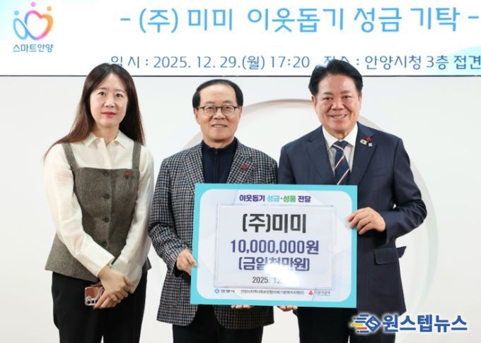 원스텝뉴스 이병희 기자 | 안양시는 지난 29일 ㈜미미로부터 이웃돕기 성금 1천만원을 기탁받았다고 30일 밝혔다.