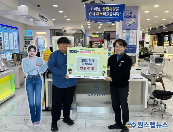 원스텝뉴스 이병희 기자 | 의정부시 흥선동행정복지센터는 12월 29일 다비치안경 의정부점이 ‘100일간 사랑릴레이 배턴 잇기’에 동참하며 안경 41개를 기부했다고 밝혔다.