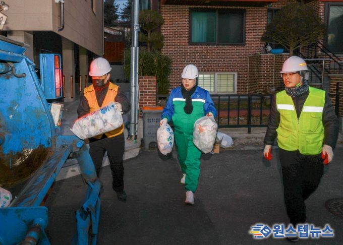원스텝뉴스 이병희 기자 | 과천시는 31일, 연말을 맞아 환경미화원의 근무 현장을 점검하고, 현장의 의견을 청취하기 위해 새벽 청소 작업에 함께했다.