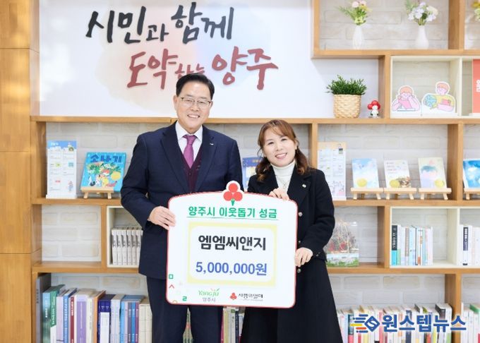 원스텝뉴스 이병희 기자 | 양주시가 31일 엠엠씨앤지로부터 연말을 맞아 이웃돕기 성금 500만 원을 기탁받았다.