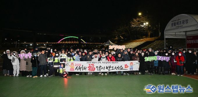 원스텝뉴스 이병희 기자 | 의정부시는 1월 1일 새해 첫날, ‘2026 의정부시 해맞이 산책, 하천길 따라 새빛까지’ 행사를 신곡새빛정원에서 성황리에 개최했다.