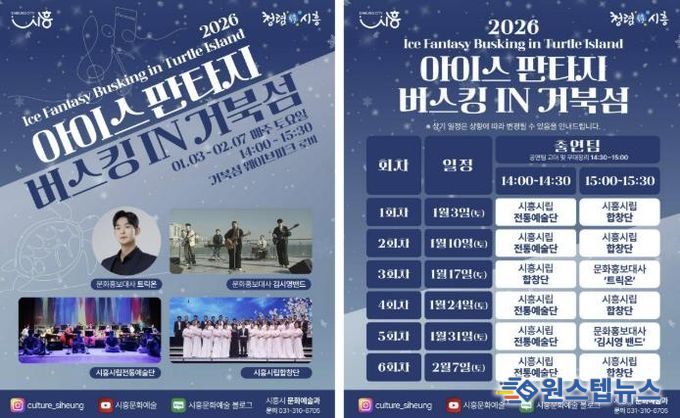 원스텝뉴스 천규영 기자 | 시흥시는 지난 연말에 진행된 ‘2025 시흥 사운드 오브 윈터’의 열기를 잇는 후속 문화예술 프로그램으로, 겨울철 거북섬을 찾는 시민과 관광객에게 풍성한 즐길 거리를 제공하고자 ‘2026 아이스 판타지 버스킹 인 거북섬’을 운영한다.
