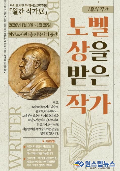 하안도서관 1층 커뮤니티 공간에서는 기획 전시 ‘월간 작가전(展)’을 운영한다. 매월 하나의 키워드를 중심으로 작가를 선정해 작품 세계를 조명하며, 1월에는 노벨문학상 수상 작가, 2월에는 SF(과학 소설) 작가 등 다양한 주제로 작가를 선정해 시민이 매달 새로운 작품을 만날 수 있도록 한다.