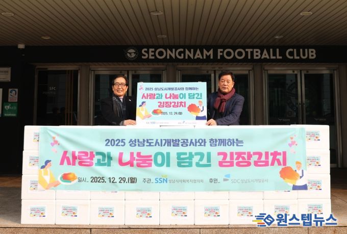 원스텝뉴스 이병희 기자 | 성남도시개발공사는 지난해 12월 23일과 29일 양일에 걸쳐 성남시 독거노인종합지원센터와 성남시사회복지협의회에 김장김치를 전달했다고 2일 밝혔다.