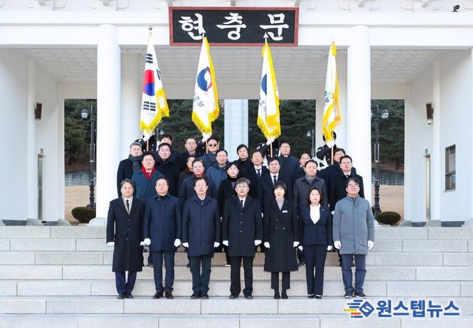 원스텝뉴스 이병희 기자 | 경상북도의회는 1월 2일 병오년 새해를 맞아 국립영천호국원을 찾아 신년 참배를 실시하고, 도청 화백당에서 '2026년 경상북도의회 신년교례회'에 이어 도의회 다목적실에서 '2026년 경상북도의회 시무식'을 개최하며 새해 의정활동을 힘차게 출발했다.