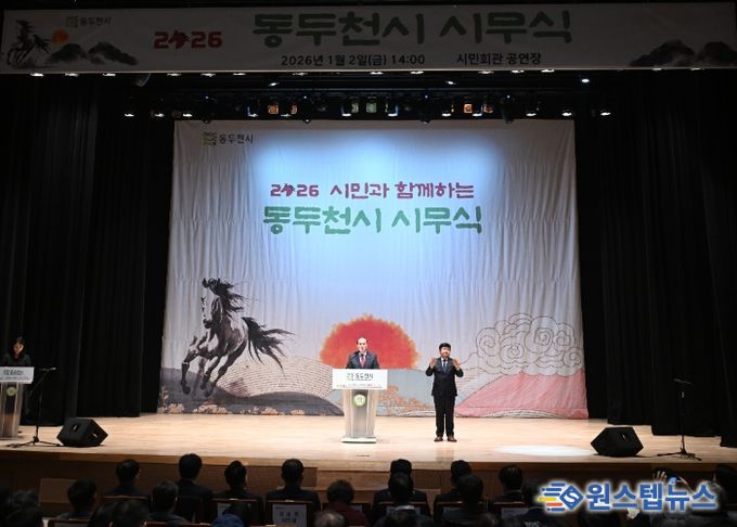 원스텝뉴스 이병희 기자 | 동두천시는 2026년 병오년(丙午年) 새해를 맞아 1월 2일 오후 2시 시민회관 공연장에서 시민과 함께하는 ‘2026년 시무식’을 개최했다.