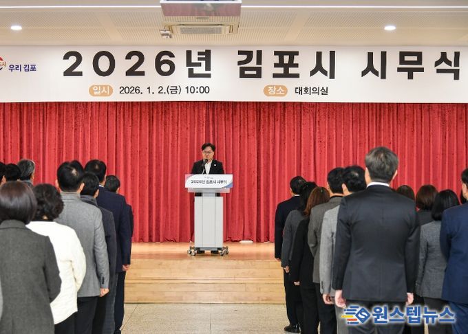 이날 시무식에는 김병수 김포시장을 비롯해 실·국·소장, 부서장 등 간부 공직자 100여 명이 참석해 새해 시정 운영 방향을 공유하고, 시민 중심의 시정 추진과 새로운 도약을 향한 결의를 다졌다.