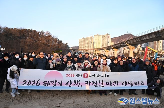 원스텝뉴스 이병희 기자 | 의정부시의회는 지난 1일 병오년 새해를 맞아 지역 주민들과 함께 걸으며 희망찬 2026년을 시작할 수 있도록 ‘해맞이 산책, 하천길 따라 새빛정원까지’ 신년 해맞이 행사에 참석했다.