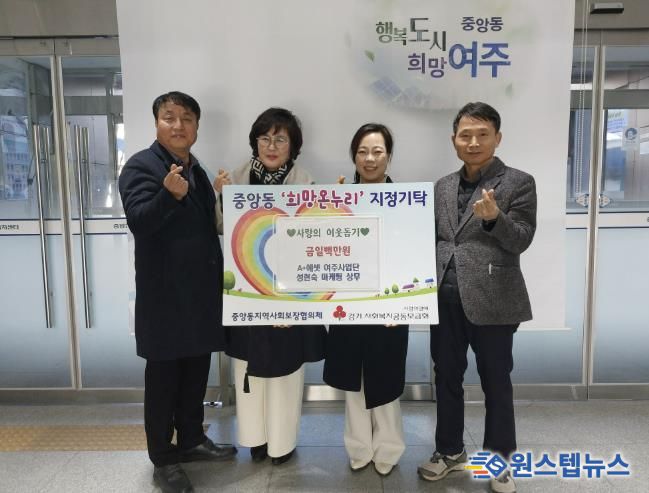 심우봉 중앙동장은 “1인 가구 돌봄과 고독사 예방이라는 중요한 사업에 뜻을 모아주신 A+에셋 여주사업단에 깊이 감사드린다”며 “기탁해 주신 성금은 대상자들에게 실질적인 도움이 될 수 있도록 소중히 사용하겠다”고 말했다.
