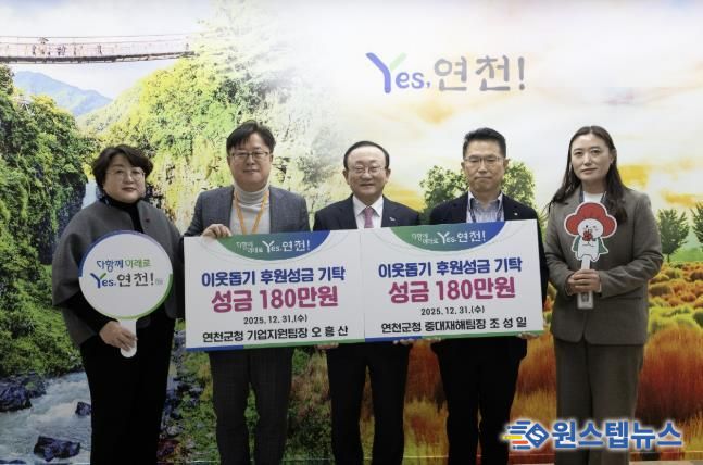 원스텝뉴스 이병희 기자 | 연천군은 조성일 중대재해팀장과 오흥산 기업지원팀장이 지난달 31일 복지사각지대 취약계층 지원을 위한 180만원의 후원성금을 기탁해 지역사회에 훈훈한 감동을 전하고 있다고 밝혔다.