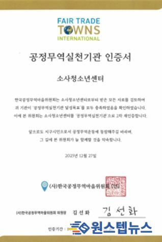 원스텝뉴스 이병희 기자 | 부천여성청소년재단이 운영하는 소사청소년센터는 지난달 27일 사단법인 한국공정무역마을위원회로부터 ‘공정무역 실천기관’ 2차 재인증을 획득했다.