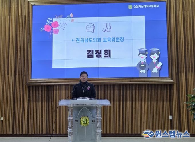 원스텝뉴스 이병희 기자 | 김정희 전남도의회 교육위원장은 1월 6일 순천매산여자고등학교에서 열린 제75회 졸업식에 참석해 졸업생들의 새로운 출발을 축하하고, 전남교육의 미래를 향한 도의회 교육위원회의 지원 의지를 밝혔다.