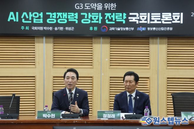 원스텝뉴스 이병희 기자 | 더불어민주당 박수현 의원(충남 공주·부여·청양)은 5일 국회의원회관에서 송기헌 의원(강원 원주을), 위성곤 의원(제주 서귀포시)과 함께 'G3 도약을 위한 AI 산업 경쟁력 강화 전략 국회토론회'를 열고, AI의 산업·공공·지역 확산을 위한 정책 과제를 논의했다.