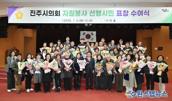 원스텝뉴스 이병희 기자 | 진주시의회는 1월 6일 시청 시민홀에서 지역사회의 귀감이 된 시민 60명을 대상으로 『2025년 하반기 선행시민 표창 수여식』을 개최했다.