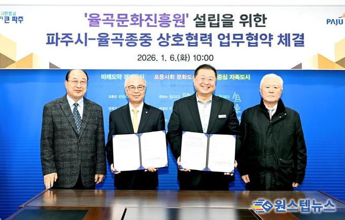 원스텝뉴스 이병희 기자 | 파주시가 율곡 이이 선생의 학문과 철학을 체계적으로 계승하기 위해 추진 중인 ‘율곡문화진흥원’설립을 위해 지난 6일 율곡 선생의 후손인 덕수 이씨 종중과 업무협약을 체결했다.