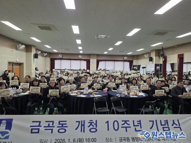 원스텝뉴스 이병희 기자 | 2026년 개청 10주년을 맞은 권선구 금곡동은 지난 6일 지역구 의원과 주민 등 100여 명이 참석한 가운데 주민자치회 및 통장협의회와 함께 10주년 기념행사를 개최했다.