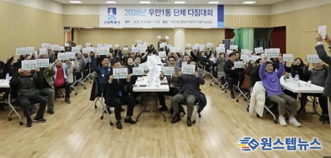 원스텝뉴스 이병희 기자 | 지난 6일, 수원시 팔달구 우만1동 단체장협의회는 단체원 100여 명이 참여한 가운데 우만1동 행정복지센터 3층 대회의실에서 단체 간 화합과 역량 강화를 위한 ‘2026 우만1동 단체 다짐대회’를 개최했다.