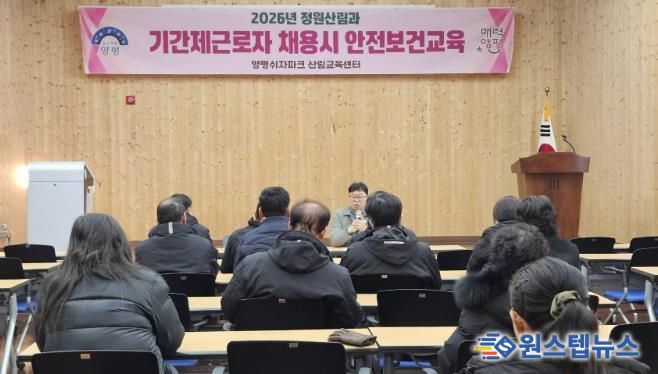 원스텝뉴스 이병희 기자 | 양평군은 지난 7일 양평 쉬자파크 산림교육센터에서 산림 현장에서 근무하는 기간제근로자 12명을 대상으로 안전보건교육을 실시했다.