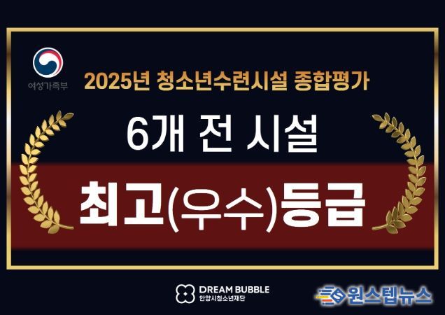 원스텝뉴스 이병희 기자 | 안양시청소년재단은 성평등가족부와 한국청소년정책연구원이 실시한 ‘2025년도 청소년수련시설 종합평가’에서 소속 6개 청소년수련시설이 전국 최상위 성과를 거두며 운영 역량을 공식적으로 인정받았다.