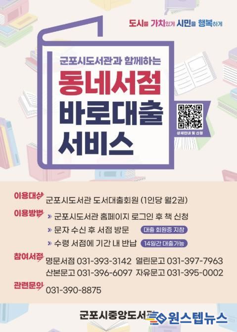 원스텝뉴스 이병희 기자 | 군포시도서관은 1월 2일부터 ‘2026년 동네서점 바로대출 서비스’ 운영을 재개한다고 밝혔다.