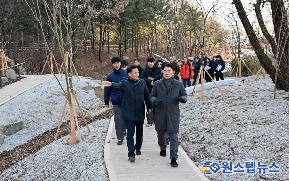 원스텝뉴스 이병희 기자 | 의정부시는 2026년 병오년 새해를 맞아 1월 8일 녹지 인프라 확충을 위한 주요 사업 대상지를 현장 점검했다. 점검 대상지는 ▲장암동 실외정원 ▲용현산업단지 완충녹지 산책로 및 가로숲길 조성 사업지 ▲민락동 감성쉼터 등이다. 이번 점검은 도심 속 쉼터와 실외정원 확충, 안전한 보행환경 조성, 산림 명소 발굴 등 녹지 인프라 조성 사업의 추진 현황을 점검하고, 시민들이 일상에서 녹지 공간을 보다 쉽게 이용할 수 있도록 추진 중인 ‘도시숲 프로젝트’의 사업 방향과 현장 여건을 확인하기 위해 진행됐다.