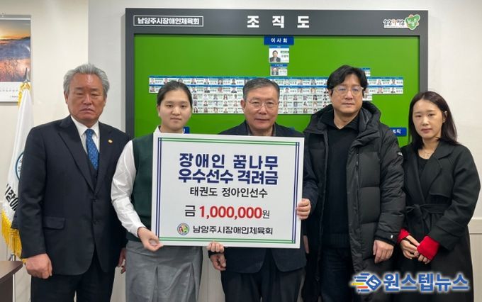 이날 행사에서 손기남 남양주시장애인체육회 수석부회장이 장애인태권도 국가대표 정아인 선수에게 직접 격려금을 전달했다. 전달식에는 윤성한 남양주시장애인태권도협회장을 비롯한 관계자와 선수 가족이 함께 참석해 의미를 더했다.