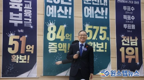 원스텝뉴스 이병희 기자 | 김문수 (전남 순천갑, 더불어민주당) 국회의원이 10일 순천대학교 파루홀에서 개최한 '2025년 의정보고회: 이재명정부와 국민주권시대로!'가 성황리 개최됐다.