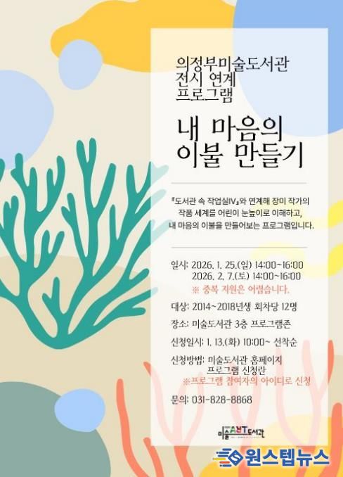 신청은 1월 13일 오전 10시부터 의정부미술도서관 누리집에서 선착순으로 접수한다. 자세한 운영 일정과 세부 내용은 누리집에서 확인할 수 있다.