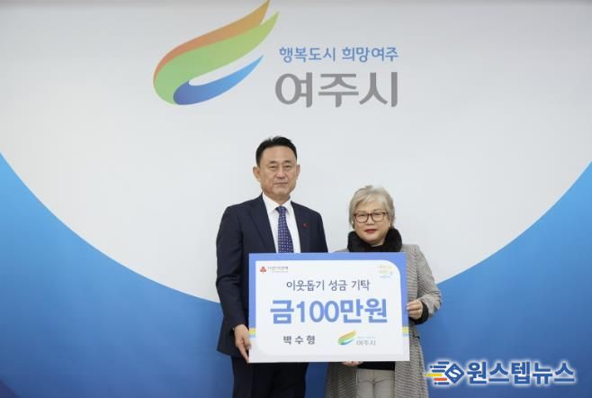 원스텝뉴스 이병희 기자 | 지난 9일 여주시민 박수형님(59년생)은 여주시를 방문하여 이웃돕기 성금 100만원을 기탁했다.