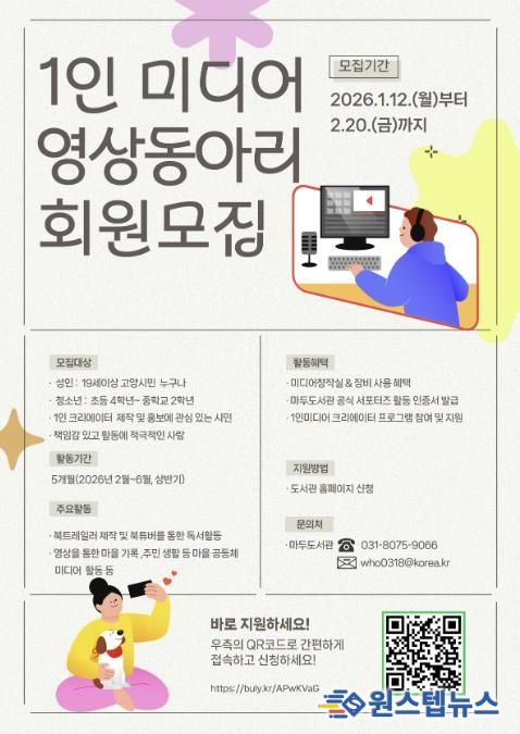 고양특례시 마두도서관이 미디어 창작실을 기반으로 한‘1인 미디어 영상동아리’를 2월부터 6월까지 운영한다. 영상동아리를 통해 지역주민을 마을의 문화와 역사를 기록하는 시민활동가로 성장시키고, 청소년은 물론 고양시민의 독서경험을 영상으로 확장하고 사회적으로 공유하는 새로운 시도에 나선다.