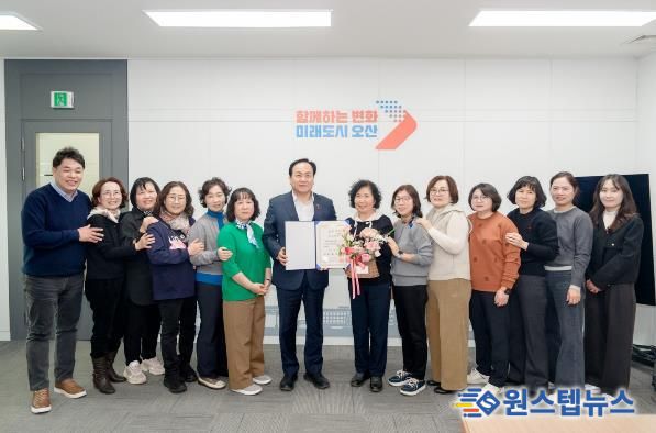 원스텝뉴스 이병희 기자 | 오산시는 지난 9일, 제15기 국민추천포상에서 국무총리 표창을 수상한 ‘이스트 봉사단’에 상장을 전달하고 봉사자들을 격려했다고 밝혔다. 이스트 봉사단은 앞서 지난 1월 2일 청와대 영빈관에서 열린 시상식에서 국무총리 표창을 수상한 바 있다.