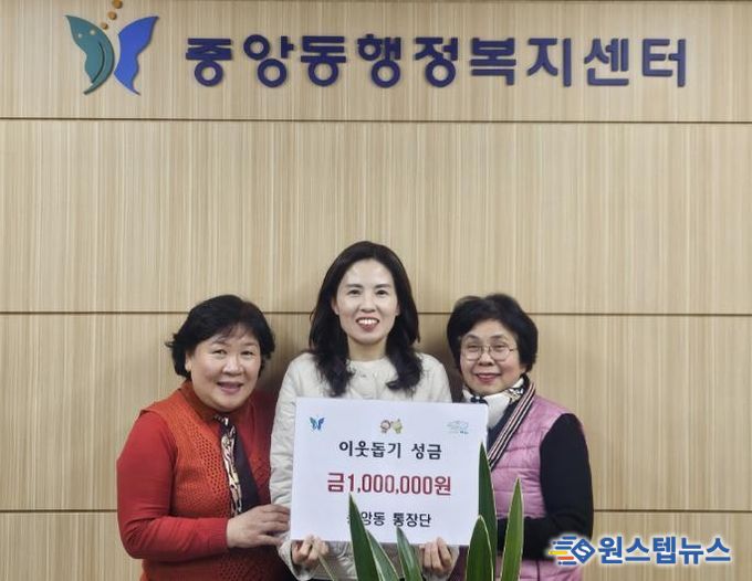 중앙동 통장단은 이번 성금 기탁뿐만 아니라, 평소에도 지역사회를 위한 다양한 봉사활동에 앞장서 왔다. 지난 동지에는 직접 팥죽을 쑤어 어르신들께 전달하는 ‘이웃사랑 팥죽 나눔’ 행사를 진행했으며, 관내 복지관 등에서 정기적인 배식 봉사에도 참여하고 있다.