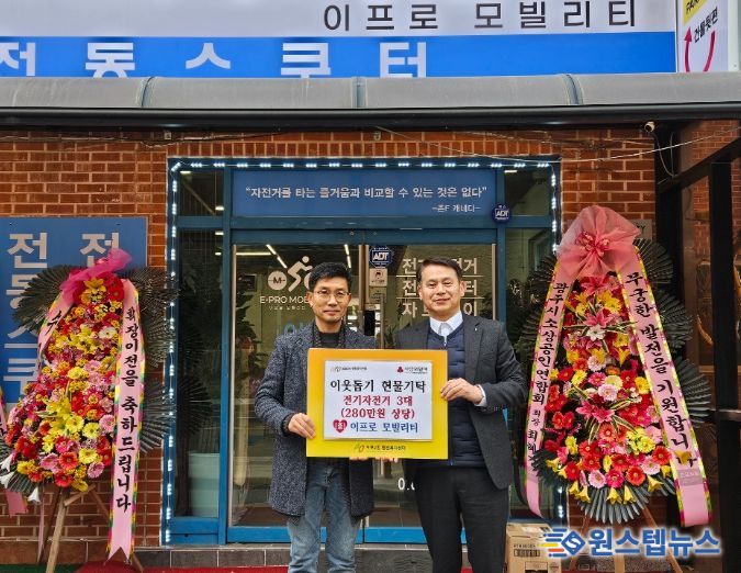 이번 기탁은 이프로 모빌리티가 최근 매장을 확장 이전하면서 지역사회로부터 받은 성원에 보답하고 이동에 어려움을 겪는 취약계층에게 실질적인 도움을 제공하고자 마련됐다. 기탁된 전기자전거는 이동 수단이 필요한 지역 내 이웃들에게 지원될 예정이다.