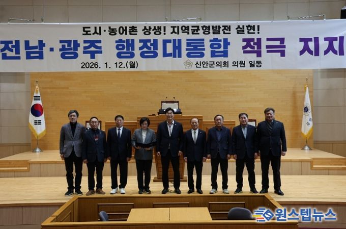 원스텝뉴스 이병희 기자 | 신안군의회는 12일 본회의장에서 전라남도와 광주광역시의 행정통합 추진을 적극 지지하는 성명서를 발표하고, 통합 논의가 선언에 그치지 않고 실행 단계로 이어질 것을 촉구했다.