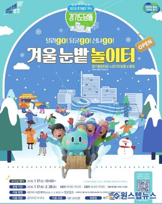 경기도는 겨울방학을 맞은 아이들과 가족이 도심 속에서 안전하게 겨울 놀이를 즐길 수 있도록 ‘겨울 눈밭 놀이터’를 운영한다고 13일 밝혔다.