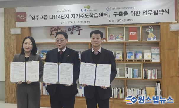 원스텝뉴스 이병희 기자 | 동두천양주교육지원청은 1월 12일 양주시, 한국토지주택공사 경기북부지역본부와 함께 ‘양주고읍 LH14단지 자기주도학습센터 구축’을 위한 3자 간 업무협약(MOU)을 체결했다.
