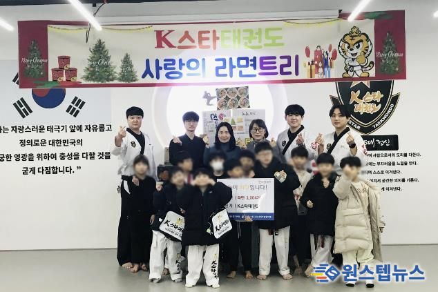지난해에 이어 어려운 이웃을 돕고자 ‘사랑의 라면트리’를 만들어 이웃사랑 나눔을 실천하고 있는 K스타태권도에서는 천사같은 원생들의 따뜻한 마음을 표현하고자 올해에도 라면 1,004봉지를 모아서 기탁했다.