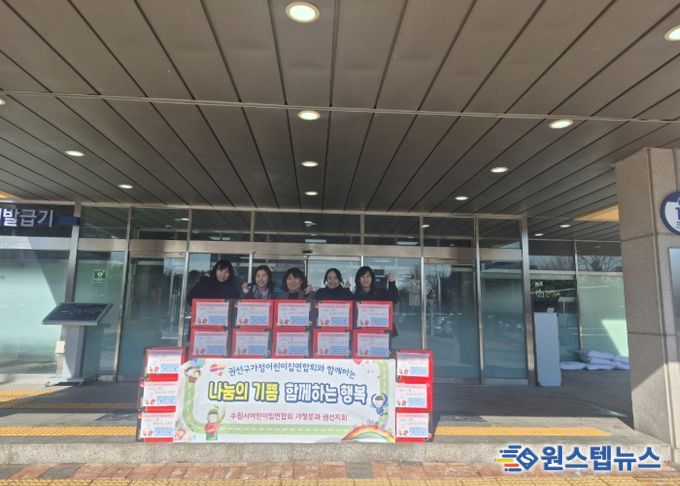 원스텝뉴스 이병희 기자 | 13일, 수원시어린이집연합회 가정분과 권선지회에서는 권선구를 찾아 후원물품 20 상자를 전달했다.