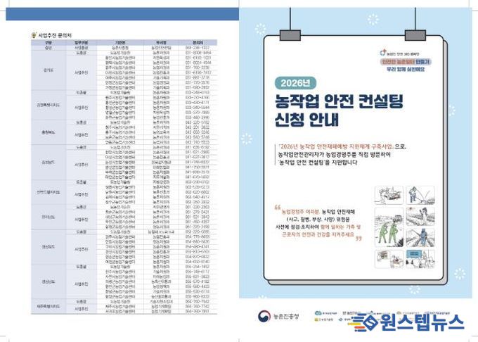특히 올해는 중대재해처벌법 강화로 현장 대응의 중요성이 더욱 커짐에 따라, 상시근로자 5인 이상을 고용한 농업경영주를 중심으로 상담 대상 농가를 모집한다. 이를 통해 농업 현장에서의 법적 책임 이행은 물론, 실질적인 사고 예방과 안전 관리 수준 향상을 도모할 계획이다.