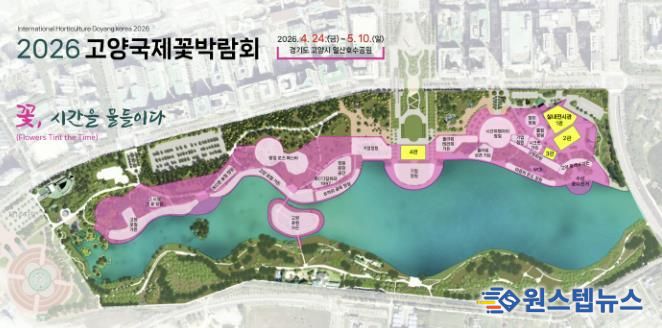원스텝뉴스 이병희 기자 | 올해 18회를 맞는 화훼 전문 국제박람회 ‘2026고양국제꽃박람회’가 개막 100일을 앞두고 윤곽을 나타냈다. 이번 박람회는 ‘꽃, 시간을 물들이다’를 주제로 4월 24일부터 5월 10일까지 17일간 일산호수공원 일원에서 열린다.