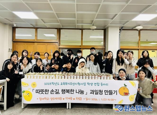 완성된 과일청은 1월 13일, 각 학교를 대표한 학생들과 교육복지사가 양주 백석읍 행정복지센터를 통해 겨울철 건강 취약계층 등 지역사회 이웃들에게 전달했다. 활동 이후에는 소감 나눔 및 만족도 조사 시간을 통해 학교 간 경험을 공유하고, 연합 활동의 의미를 되새기는 시간을 가졌다.