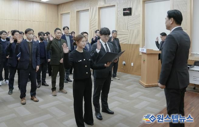 원스텝뉴스 이병희 기자 | 시흥도시공사는 지난 12일 공사 본사에서, 2026년 신년을 맞아 무재해, 인권경영 및 청렴윤리 실천, 개인정보보호에 대한 의지를 대내외적으로 표명하기 위한 ‘3대 경영의지 선포식’을 개최했다고 밝혔다.
