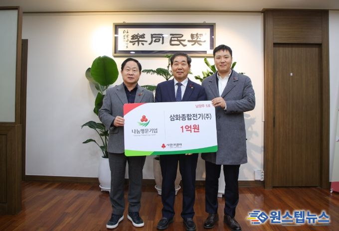 원스텝뉴스 이병희 기자 | 남양주시는 14일 삼화종합전기가 사회복지공동모금회의 고액 기부 프로그램인 ‘나눔명문기업’ 5호로 가입하고, 지역 내 취약계층 지원을 위해 1억 원 기부를 약정했다고 밝혔다.